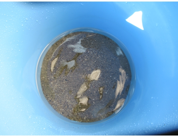 ・洗浄後は乾燥させなければならないので、ガーゼ (gauze) を敷き、その上にバケツの中の砂を広げた。