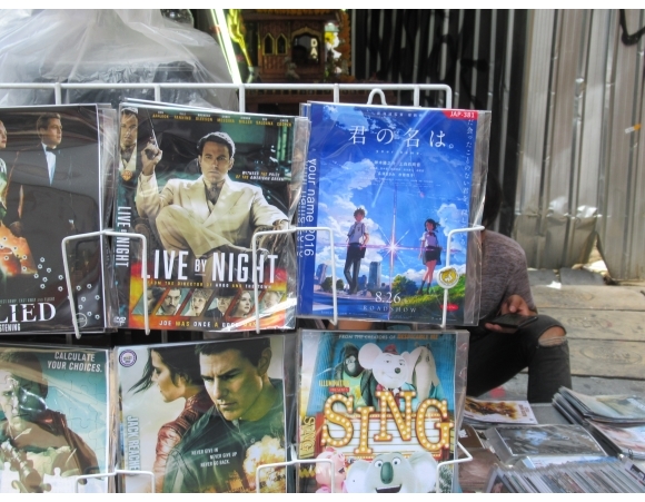 コピーされたDVDの販売状況は10年前と変わらない。というか、10年前に訪れたときは、すべての販売場所がそうだったかどうかは分からないが、購入したいものを手に取って渡すと、そこにはDVDは入っていなく、近くに駐車してあった車などからDVDを持ってきていた。おそらく摘発対策のためだと思われる。ただ、今回は、それぞれのパッケージ?の中にはDVDがそのままDVD入っていた。 もちろん「違法」なのは明らかなのだが、こういうのが路上で公然と売られているのもバンコクの魅力の一つである。
