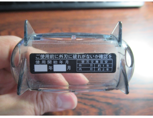 欠損した刃を新しいものに交換すれば、当然ではあるが剃り味は復活する。それで、まあ、特に不自由することなく使用していたのだが、再び1年ちょっとして刃がかけてきてしまった。「またか!」と思いながら、シェーバー本体のカバーをよくよく見ると、「替刃交換目安:外刃、約1年、内刃、約2年」と印字されたシールが貼ってあった。