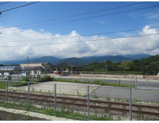 ・途中、急行列車を通過待ちをするために「日野春」という駅で5分近く停車した。その時のホームからの眺め。