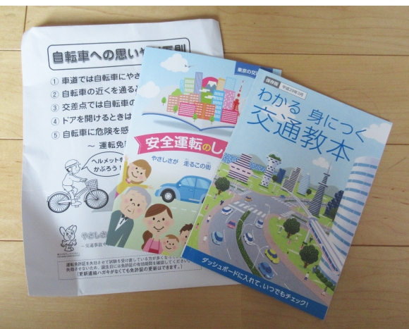 講習でもらった冊子。毎回思うのだが、この手の配布物は税金の無駄遣い以外の何ものでもないような気がしてならない。配布する方は「事故を減らすために大切なことが記してある」と言うかもしれないが、講習が終わってから読み返す人などほんの一握りのはずである。どうせ警視庁から天下った役員がいる印刷会社にでも作成させているのだろう。全く私の勝手な憶測にすぎないが…。