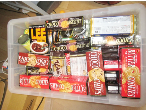 いざという時のために食料のストックはしている。非常食として滅多に手を付けないものと日常食べるためのものの2種類がある。日常よく食べるビスケット類は少しずつ減っていくので、だいたい1週間に1回くらいの割合で買い足している。ビスケット類は、いちいち数えてはいないが、30箱くらいはあるのではないだろうか。
