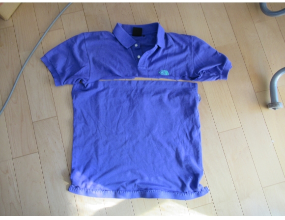 ポロシャツは10着ちかく持っていると思うのだが、ここ15年以上全く着ていない。ほとんどのものは袖 (sleeve) の部分がきつくなり、二の腕がパンパン状態。おそらくもう着ることはないだろう。少し大きめの綿の袋が欲しかったので、胸から半分に裁断して、裾 (hem) をいつものように、まずクモの巣テープで圧着してから得意の?手縫いをした。