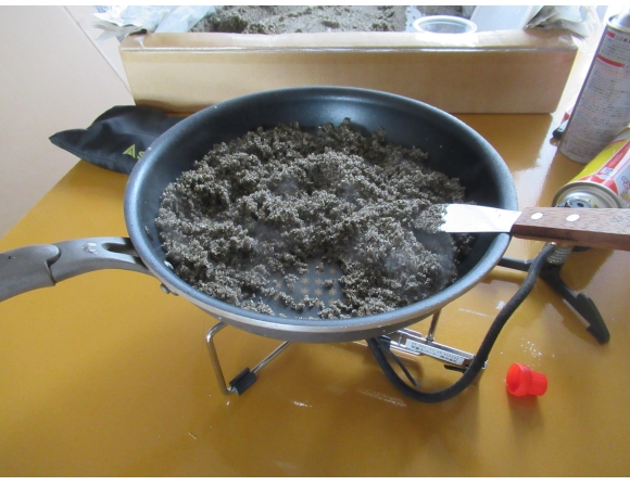 去年購入した砂を「いざという時には汚れたままでは浄水器には使用できない」と思い全て水洗いした。当然、水洗いして置いてそのままというわけにもいかず乾燥させなければならない。この時期は乾燥しているので、部屋の隅にでも少し広げて放置しておけばいずれは乾燥すると思う。ただ、部屋が砂だらけになりそうだったので、「ちょっと熱して乾燥させてみるか」ということになった。