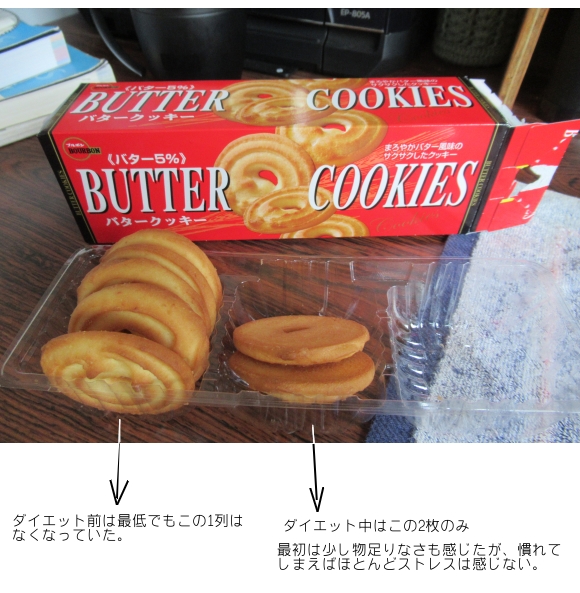 食後、コーヒーを飲みながらビスケットなどの甘いものを食べるのもちょっとした「幸せだな〜」を感じるひと時となる。ダイエット前はあまり量を気にせず食べていたが、ダイエットを決心してからは「2枚だけ」と決めた。