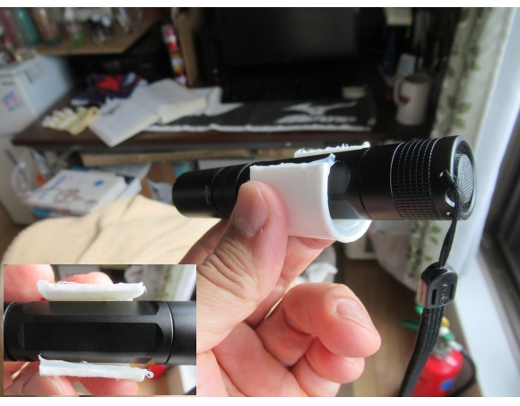 当然のことながら、フラッシュライト本体に完全に密着させるように作ってしまえば、多少の段差でもフラッシュライトはしっかりとホールドされるが、脱着 (desorption) そのものが容易ではなくなってしまう。