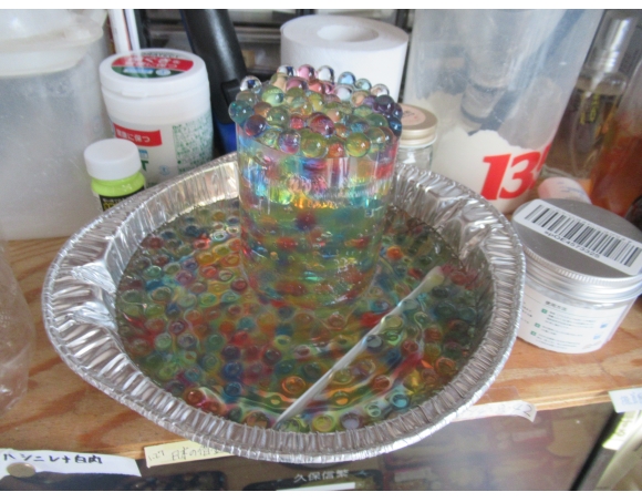 分子同士の間に水を吸収することによって膨らむと思うのだが、「どんな構造だとこんなに水をたくさん吸収するのだろう?」と驚かされる。「 なんとか有効に利用できないものだろうか?」と思案中である。