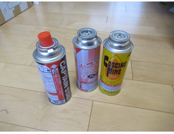 3本ともすべてガスが少し残っていた。それぞれガスコンロを使用してすっかり使い切ったが、まあ、燃焼時間は5分から10分ほどであった。