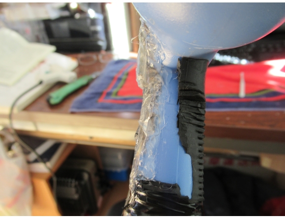 今から思えば、「ブルーの樹脂の上にある柔らかめの黒い樹脂の部分を全て取り去り、亀裂をもう少ししっかりと確認しておけばよかった!」と思っている。水漏れを処理するうえで「亀裂の状態を確認する」という基本中の基本を怠ってしまったことになる。