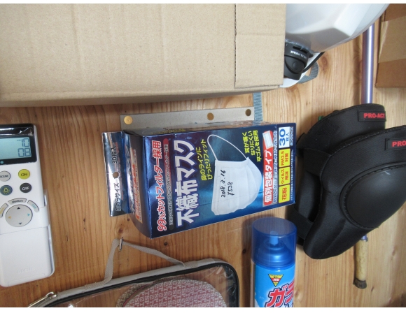 ・購入したマスクは、部屋の中に立てかけているパネルに張りつけてみた。おそらくこれであれば、最近痴呆 (dementia) 気味の私でも「あれ〜、この間買ったマスクどこにしまったのかな〜?」とはならないはずである。