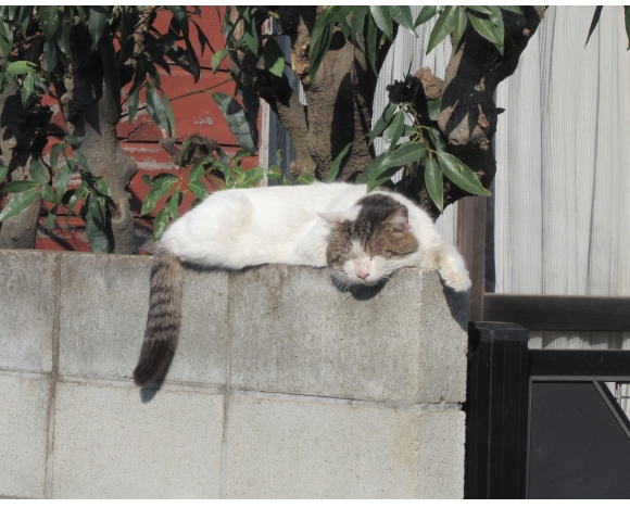 昨日、買い物帰りに撮ったもの。いや〜、気持ちよさそうに昼寝をしていた。
