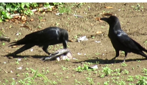 個人的には、カラスがハトを襲うのを見たのはこれが2回目だったのでそれほど驚かなかったが、初めてみたときは「カラスがハトを襲って喰ってしまうのか!」とちょっと衝撃的 (shocking) であった。私には「カラス=人間の出したゴミをあさる」イメージが強かっただけになおさらであった。