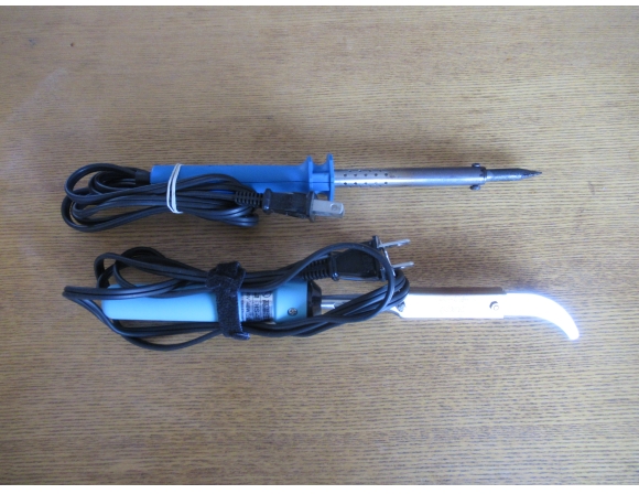 上は、いわゆる「ハンダごて」だが、下はビニールなどを熱で圧着するためのシーラーとなる。先の金属の部分が違うだけで構造は同じはずである。