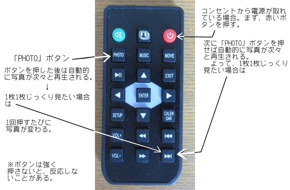 「 写真も大きく表示されるので、老齢の伯母でも見やすいだろう。 」と思って購入したデジタルフォトフレームだが、取説があまりにも役に立たないことと写真の表示 (display) がおかしいことを考えると「これを伯母に持っていくのも…。」という結論に達した。