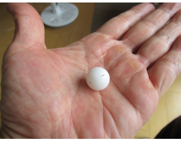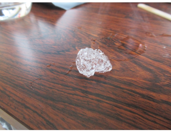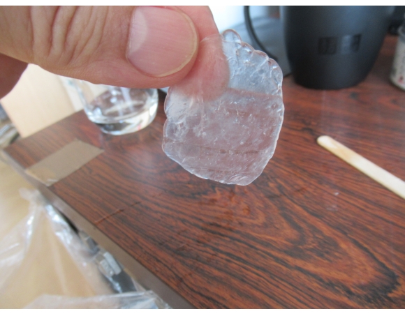 そのまま特に成形 (forming/molding) しないでもよいのだろうが、とりあえず最初にお湯に入れたものは丸くしてみた。硬度もそこそこあり、ハンマーでちょっとくらい叩いてもびくともしない。