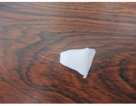 「 せっかくなので何かに利用できれば… 」と思って頭に浮かんだのが、「そう言えば糸通し (needle threader) の金具が取れていたんだっけ…」。ということで、糸通しの細い針金 (wire) に付けてみた。まあ、使えなくもないが、もう少し先が細い方が使いやすい。