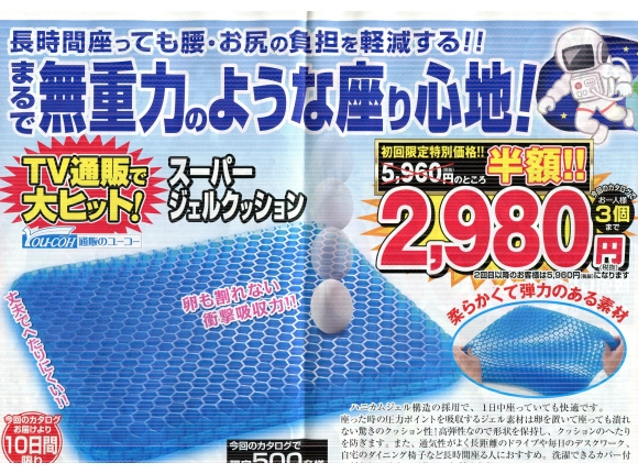 母親から手渡されたチラシは、新聞に折り込まれていたものではなく、ときどき通販カタログ (mail shopping catalog) が送られてきてその中に入っていたものとなる。おそらくその商品に関しては、「 そのチラシで初めて知った 」というよりはテレビのコマーシャルで何回か見ていて「 あら、これ良さそうね〜 」と思っていたはずである。そして、送られてきた通販カタログに似たような商品のチラシが入っていたので「 買いたい! 」となったに違いない。