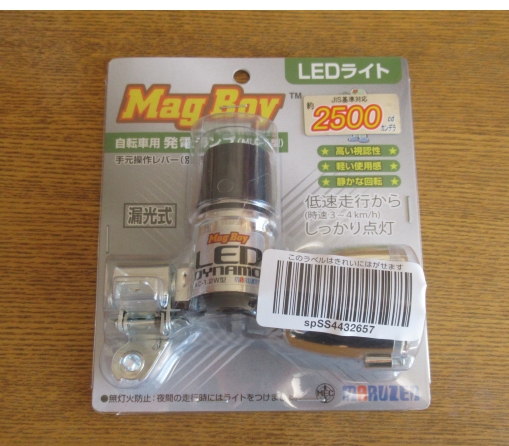 もちろん、点灯 (lighting)・点滅 (flashing) の両方をフラッシュライトを用いることはできたのだが、1つはダイナモ発電機のLEDにしたかった。途中で電池の がなくなってしまう心配はしたくなかった。よって、「 仕方がない。買うかっ!」ということになった。