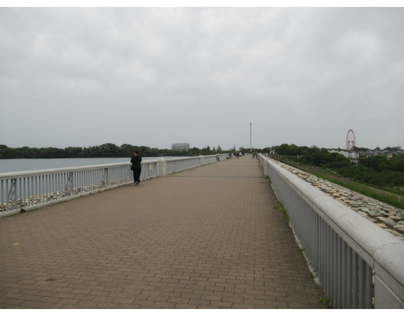 の堤体( 水をせき止めている構造物 )には遊歩道がありそこから貯水池を広く見渡すことができる。