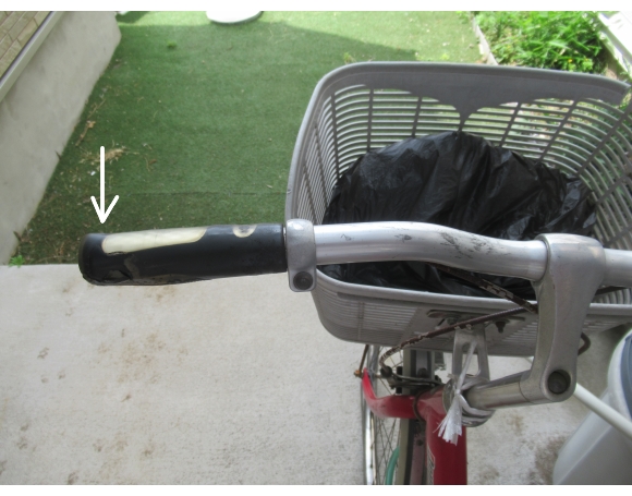 購入したバックミラーはハンドルに直接つけて行くのだが、その長さを考えるとハンドルバーの端(ハンドルグリップ)に付けていかなければならない。しかし、そこにつけてしまうと、ハンドルを握るときに邪魔で仕方がない。