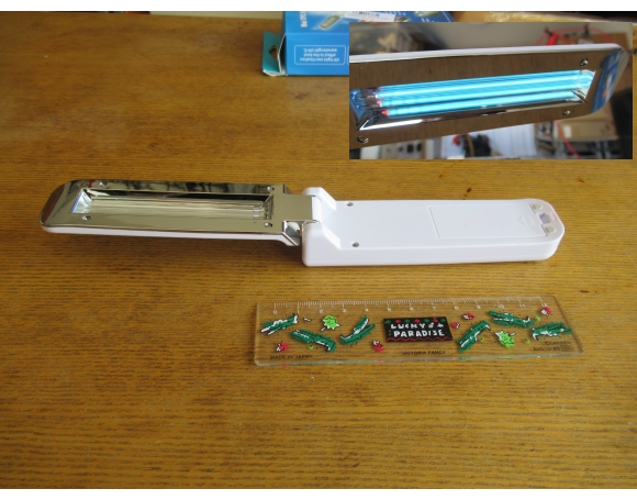 今回の新形コロナウイルス騒動のために購入したものではなく、購入にあたっては別の目的があった。紫外線の中でも特に殺菌作用 (bacteriocidal action) の強い波長253.7nmのものを購入した。ただ、本当に253.7nmの紫外線を発しているかどうかは確かめようもなく、一抹の不安は拭えない。中国製だけに…。