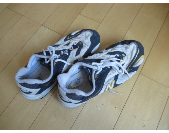 そこで、屋根裏 (loft) を「 え〜と、どの箱に入っていたかな〜?」とあっちこっちの段ボール箱 (cardboard box) を開けて探してみると、20分ほどでその姿を現した。おそらく最後に使ってから洗っていないと思われるので、ちょっと全体的に薄汚れた感じはあったが、ソールのへたり具合は今まで使用していたものよりはかなりマシで、「 まだまだ全然履けるじゃん!」ということになった次第である。