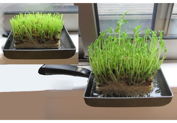 久し振りに豆苗を購入したので、二次収穫を試みた。 「これって三次収穫も可能なのだろうか?」と思い、再び窓際に置いているわけである。
