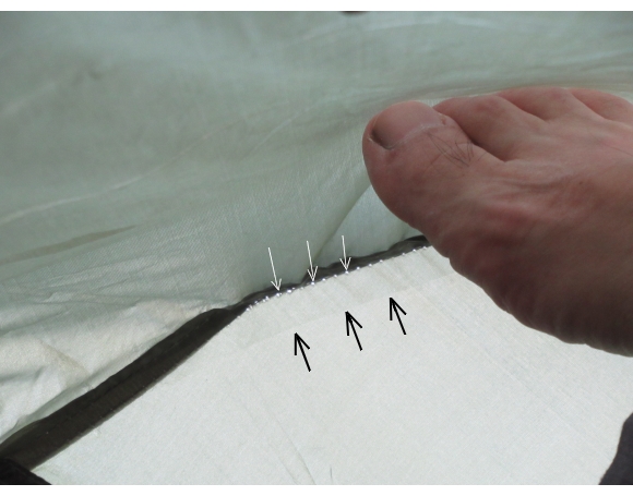 それで、中に入ってみてちょっと気が付いたのだが、縫い目 (seam) から外の光が漏れてくる部分があるのである。一応、防水用の透明のシールは貼ってあるのだが、本来なら (by all rights / properly speaking) この縫い目は見えてはいけないはず。その点を考えただけでも「 ちょっとこのテント大丈夫なのだろうか? 」という不安は拭えない。ということで、「 2〜3日雨の中に放置してみるかっ!」となった次第だ。
