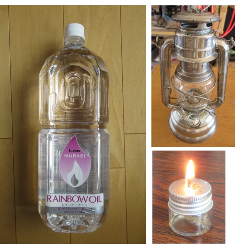ランプ用のオイルであれば、いわゆる「 灯油 (kerosine) 」で十分なわけである。安価だし、まあ、季節は限定されてしまうが、簡単に入手ができる。場合によっては、「 余っているからあげる 」などということも十分に考えられる。。