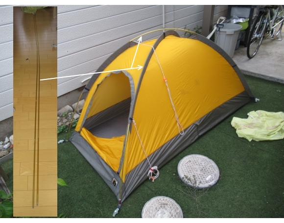 亀裂が入って外に突出した部分をペンチなどを用いて元の状態に近づくように戻せば、ある程度の使用は可能なのかもしれないが(上の写真はそうしてテントを立てている)、あくまでも応急処置 (emergency treatment) であって長期の使用には向かない。( まあ、このテントを長期間使用することなど99.999%あり得ないが… )それでも、「 どうせ補修するのであればある程度の使用には耐えられるようにしておかないと… 」という気持ちはあった。