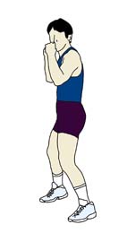 | 1 | ・オーソドックススタイルで構える。 こぶしの高さ、足の位置、脇を開かないなどに注意する。詳しくは「構え方」を参照。 |
