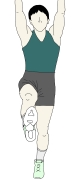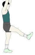 ・横に開いた手を上に持ち上げながら、横に移動させた足を、なるべく膝は曲げないようにして前に持ち上げていく。 ・素早い動作で行うよりは、一つ一つの動作を確実にゆっくりとしたスピードで行っていくとよい。 ・同じ側を繰り返してもよいし、左右交互に行っても構わない。 |