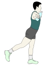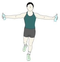 ボディウエイトエクササイズなどでもよく行われる動作です。ただし、ここではその他の2つの「腰を落とす(スクワット)」と「腕を左右へ広げる上げる」という動作を組み合わせています。