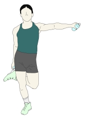 ・ペットボトルをかかとに着けるように対角の足をレッグカールをさせていく。 ・片側を複数回繰り返してもよいし、左右交互に行っても構わない。 |