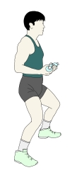 格闘技系の動作になります。左右それぞれ、一突き一突き確かめながら行う場合もありますが、連続してリズミカルに行うことによって運動強度を高めることができます。体幹部もしっかりと固定していないときれいな動作にはなりません。