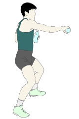 ・身体の姿勢は維持したまま、片方の手を、手首を180°返しながら前方に突く。 |
