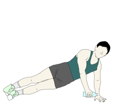 ・サイドプランクのポジションからボトルを持っている手をさげて準備する。 |