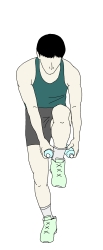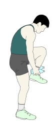 ・片足を上げながら、上げた足のくるぶしを挟むようにしてペットボトルを背中を丸めながらあてていく。