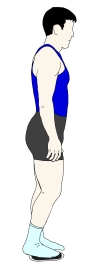 ・足と足の幅がこぶし1つから2つ分程度のスタンスのスタンディングポジションを取り、右足の下にスライダーを置く。 |
