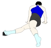 ・右足のひざを気持ち曲げながら下半身をひねって、左右の足を交差させるようにして、右足を左側にスライドさせ再び膝を伸ばしていく。 ・胸はなるべくフロアに向けて動かさないようにする。 |