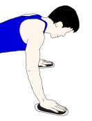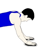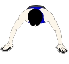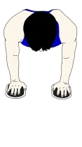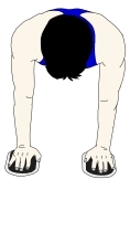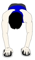 ・それぞれの手の下にスライダーを置き、手と手の幅を肩幅程度開いたプッシュアップポジションを取る。 ・頭からかかとまでまっすぐに保つ。 |