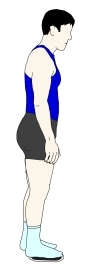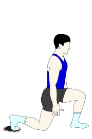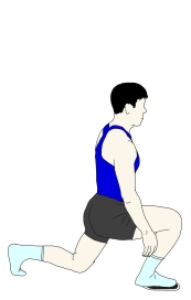 ・フロントランジからスライドさせた右足を引き再びスタートのスタンディングポジションに戻す。 ・このとき、上半身が前傾しないように注意する。 |