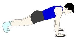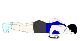 ・手の幅が肩幅程度のプッシュアップポジションを取る。 ・頭からかかとまでまっすぐに保つ。 |