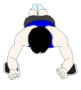 肘着きのプランクのポーズから、肘で半円を描いていく動作になります。一見、地味な動作に見えますが、かなりの筋力が要求されます。また、プッシュアップポジションから行う「ハーフサークル・プッシュアップポジション」というより運動強度の強いエクササイズもあります。