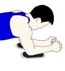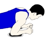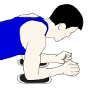 ・スライドさせきったところから手前にスライドさせ、開始時のプランクポーズに戻す。 ・動作中は、常に頭からかかとまでまっすぐになるように意識する。 ・膝をついた形で行うと運動強度をかなり下げることができる。 |
