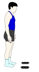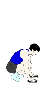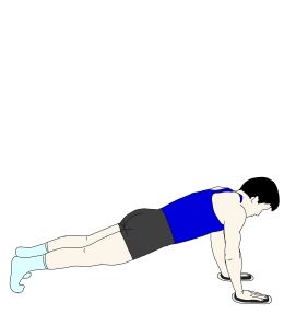 ・体幹部に力を入れながら手を前方にスライドさせてプッシュアップポジションを取る。 ・戻るときもしっかりと体幹部の力を維持したまま膝関節と股関節を曲げ、イラスト2の状態まで戻し、スタート時のスタンディングポジションまで戻っていく。 |