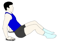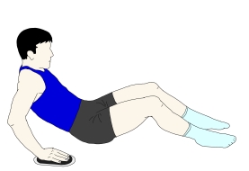 ・フロアにお尻を着いた状態から、それぞれの手の下にスライダーを置き上半身を気持ち後傾させる。 |