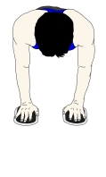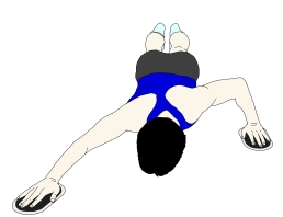 ・それぞれの手の下にスライダーを置き、腕の幅は肩幅程度か、またはそれよりも狭くしたプッシュアップポジションを取る。 ・頭からかかとまではまっすぐに保つ。 |