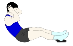 腹筋を鍛えるエクササイズです。通常の「シットアップ」のようにフロアに仰向けになった形でもできますが、おそらく座った形で行う方がより腹直筋に強い刺激が与えられると思います。手の位置はいくつかの方法がありますが、ここでは後頭部に軽く添える形にしました。