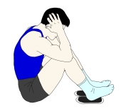 ・いわゆる「体育座り」の状態からそれぞれの足の下にスライダーを置き、上半身を軽く後傾させる。